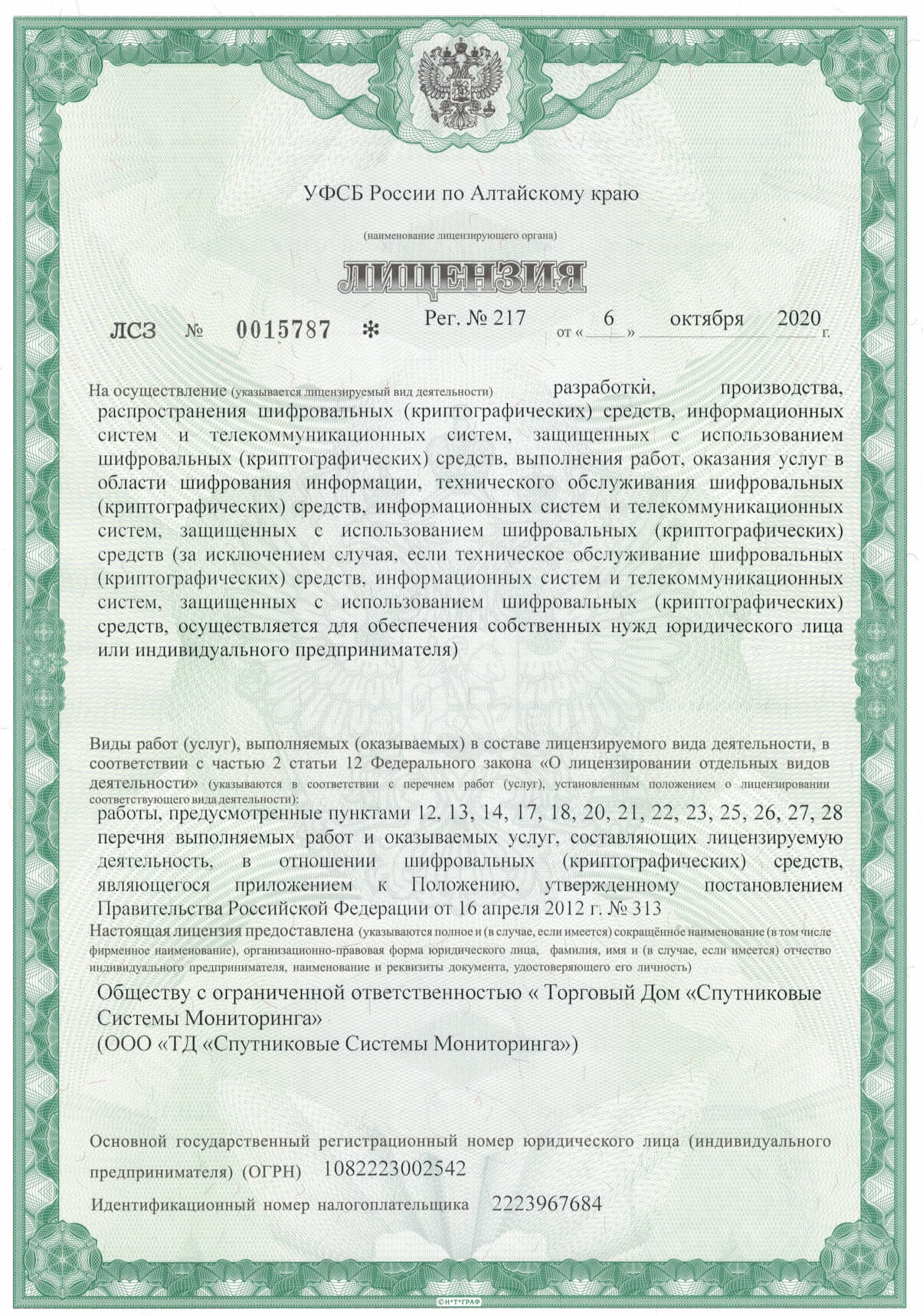 ООО «Торговый дом «Спутниковые Системы Мониторинга», Юридический адрес: 656039, Алтайский край, г. Барнаул, ул Советской Армии, 171В, офис 303, 315